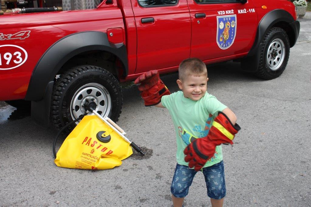 Novost u programu je bilo sudjelovanje Vatrogasne zajednice koja je mališanima omogućila da isprobaju kako je to biti vatrogasac na jedan dan i to kroz prezentaciju vozila na Trgu Sv. Križa. Što znači biti vatrogasac iskušao je i općinski načelnik Općine Križ Marko Magdić odjenuvši i isprobavši vatrogasnu opremu.