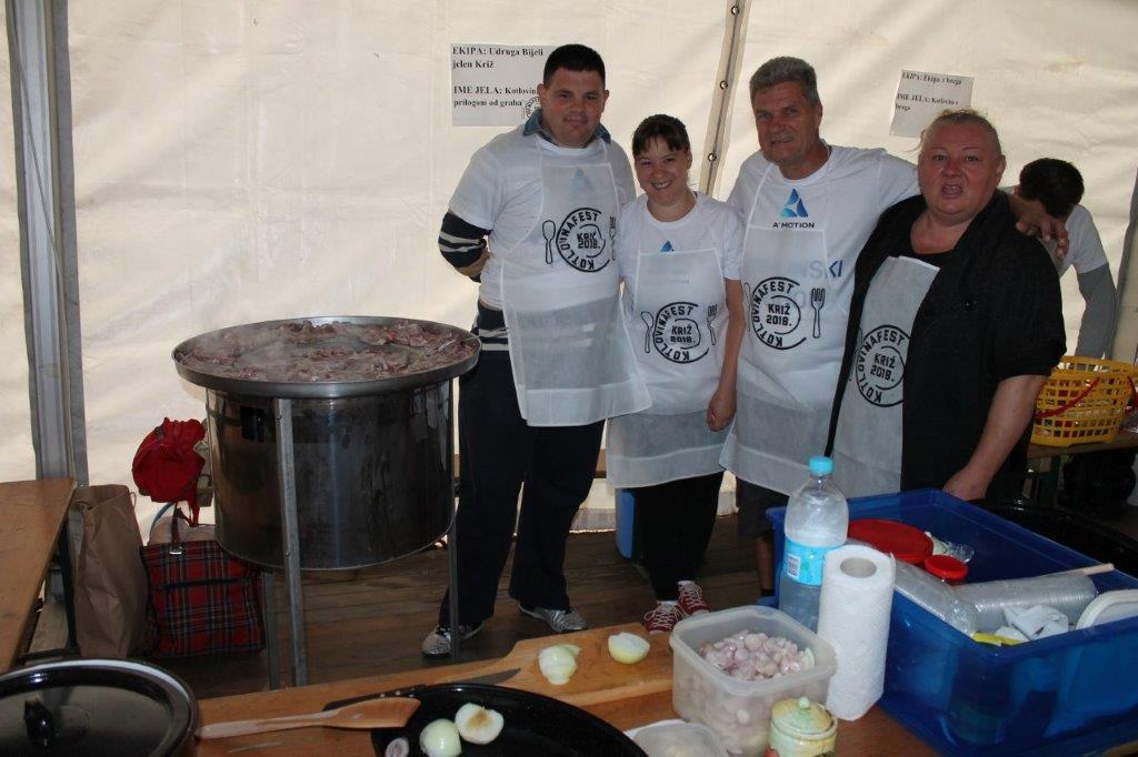 Iako je zbog vremenskih prilika otkazana Obiteljska biciklijada, drugi je Kotlovinafest Križ 2018. održan više nego uspješno. Ekipe su se zbog kiše natjecale u šatoru koji je bio do posljednjeg mjesta ispunjen oldtimerima, sudionicima 19. međunarodnog natjecateljskog susreta za povijesne-starodobne motocikle i automobile Oldtimer kluba Ivanić-Grad te svima onima koji su htjeli kušati slasnu kotlovinu. Čak 18 ekipa sudjelovalo je na Kotlovinafestu. Bilo je tu ekipa s članovima iz Kloštra, Popovače, Rakitovca, domaćih ekipa, onih koji su sudjelovali drugo godinu za redom, ali i novih mladih nada kao što je bila najmlađa ekipa pod nazivom Cvergli koji su sudjelovali po prvi put. Općina Križ zahvaljuje se svima na sudjelovanju i doprinosu koji je rezultirao s prikupljenih oko 3.500,00 kuna za Caritas Župe uzvišenja Sv. Križa. Naime kotlovina se mogla kušati uz simboličan dobrovoljni prilog, a sa zadovoljstvom možemo istaknuti da je podijeljena i posljednja porcija.