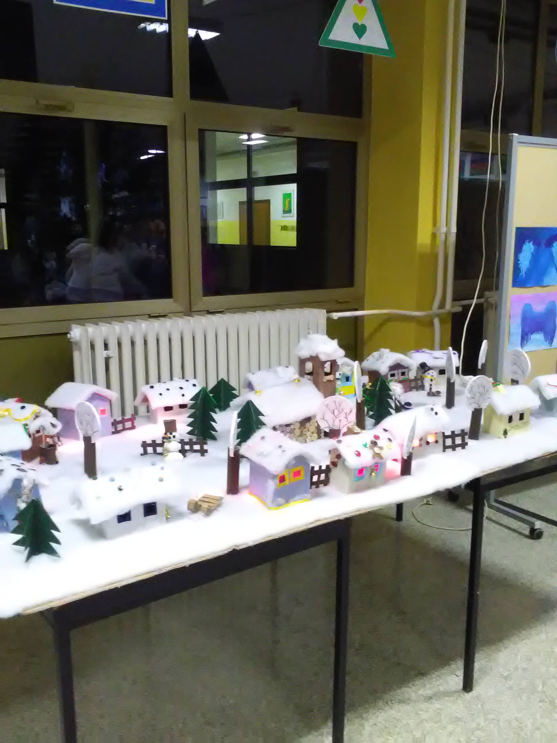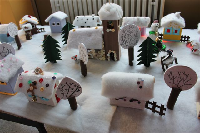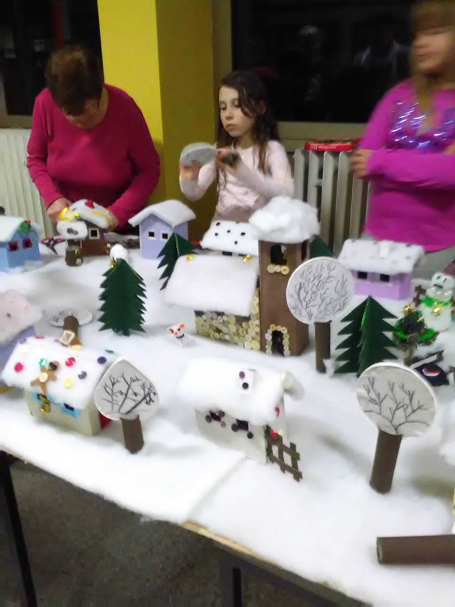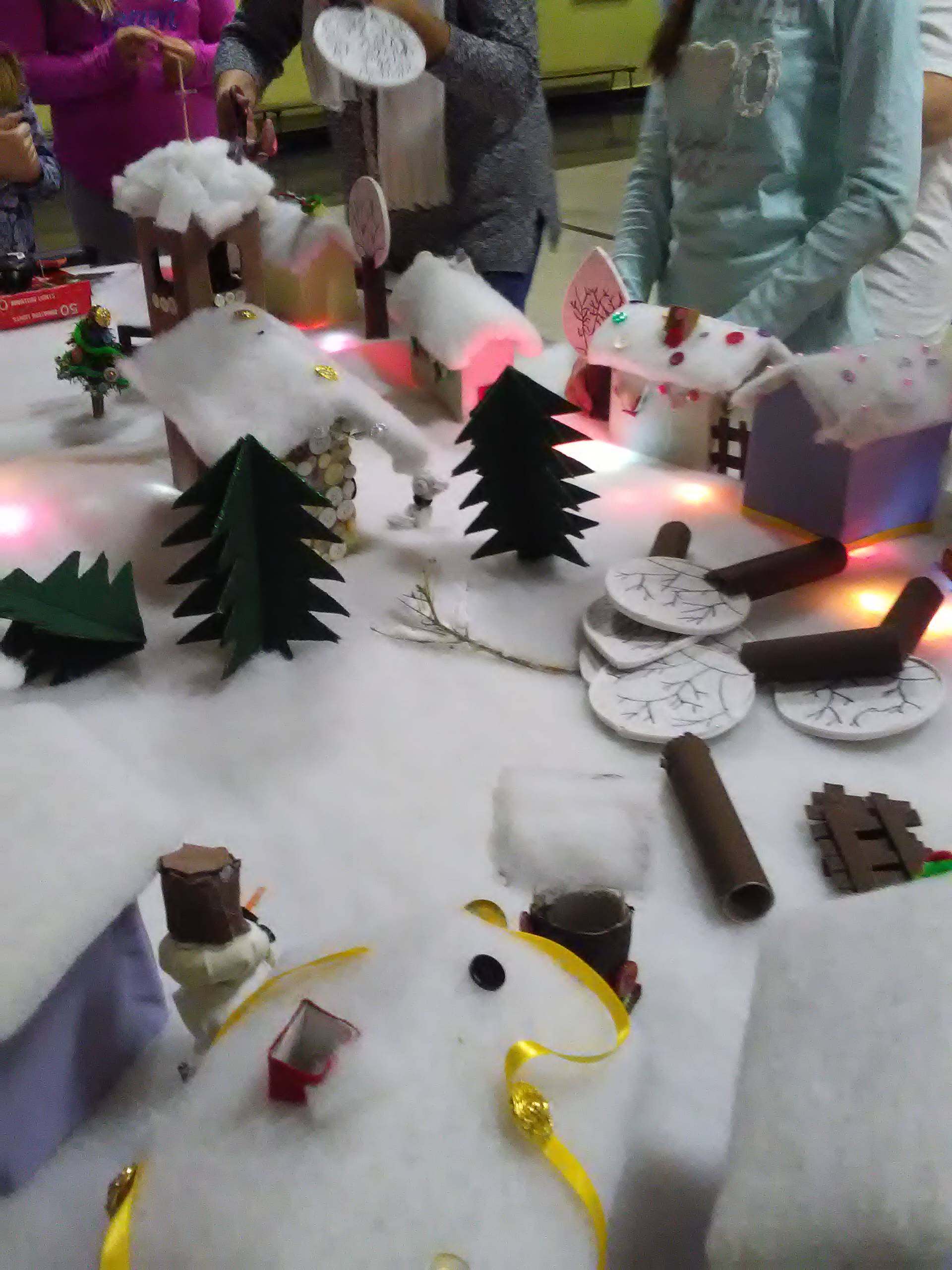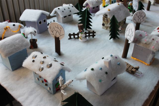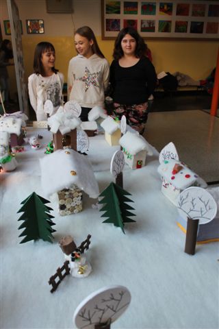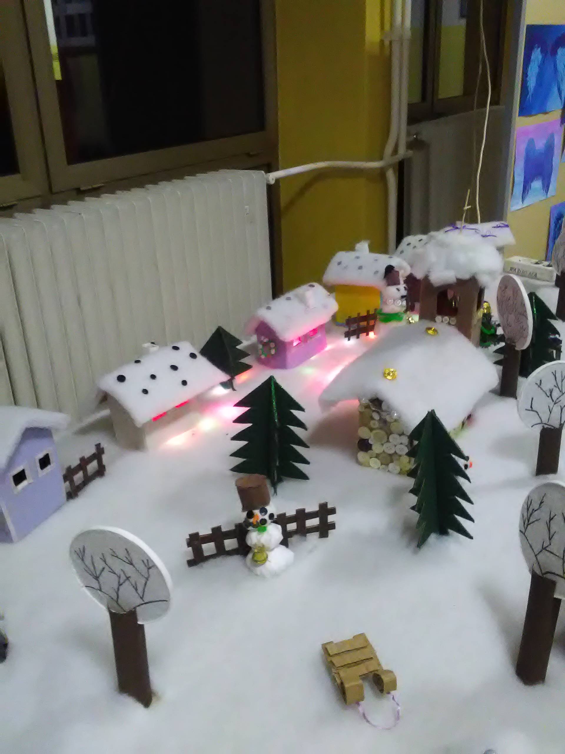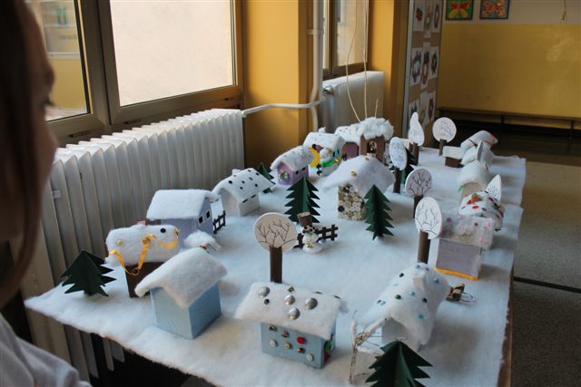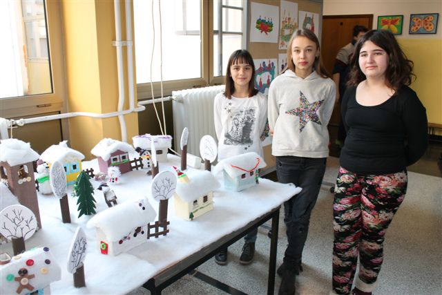 Riječ je o završnom radu učenica s voditeljicama članicama udruge Ženske ruke na recikliranju tekstila, a svi rekviziti koji čine selo pod snijegom su od komadića tkanine. Rad su djeca posebno željela prezentirati u prostoru svoje škole i taj dan su s velikim nestrpljenjem očekivala i izrazito se veselila.