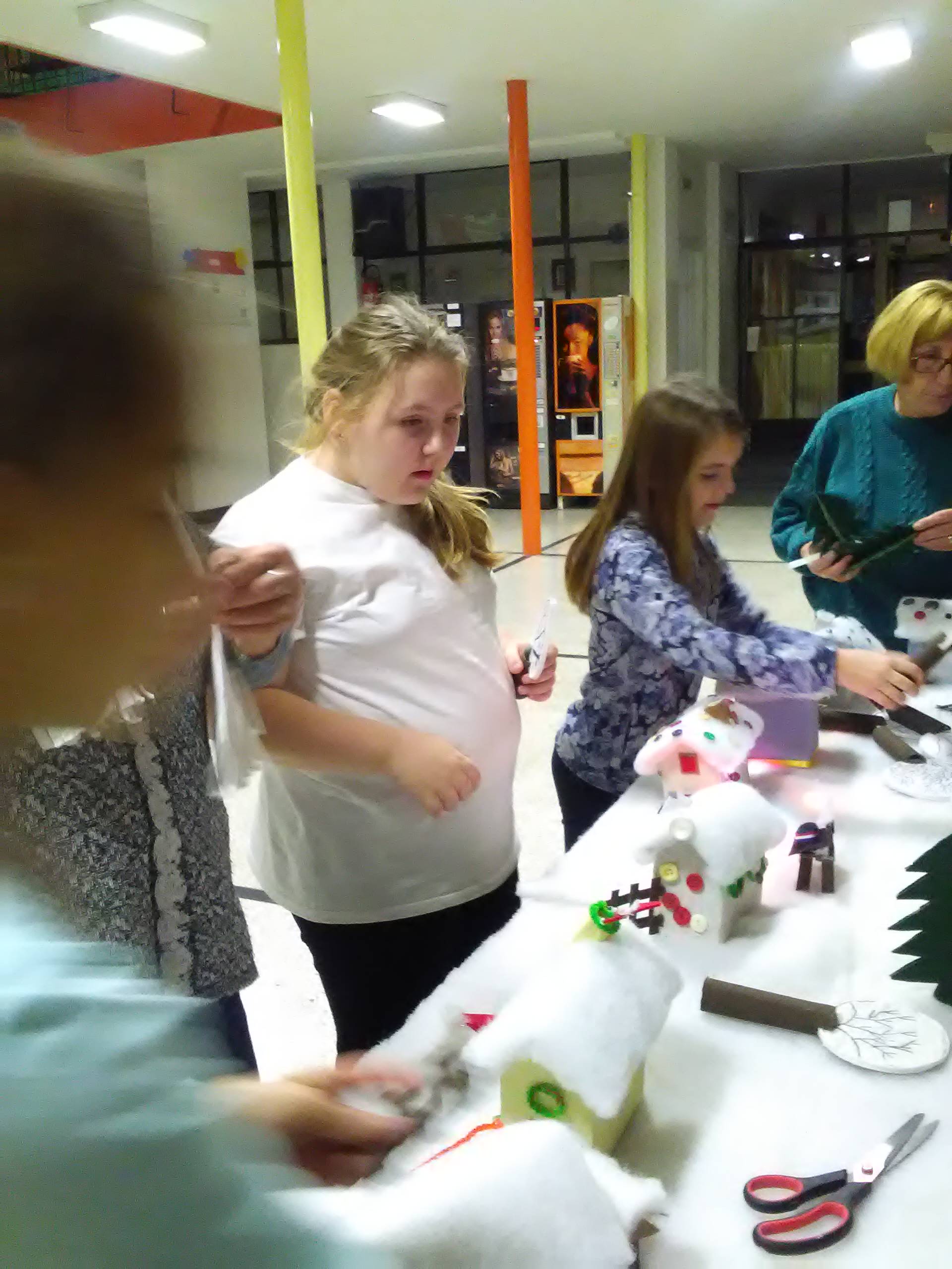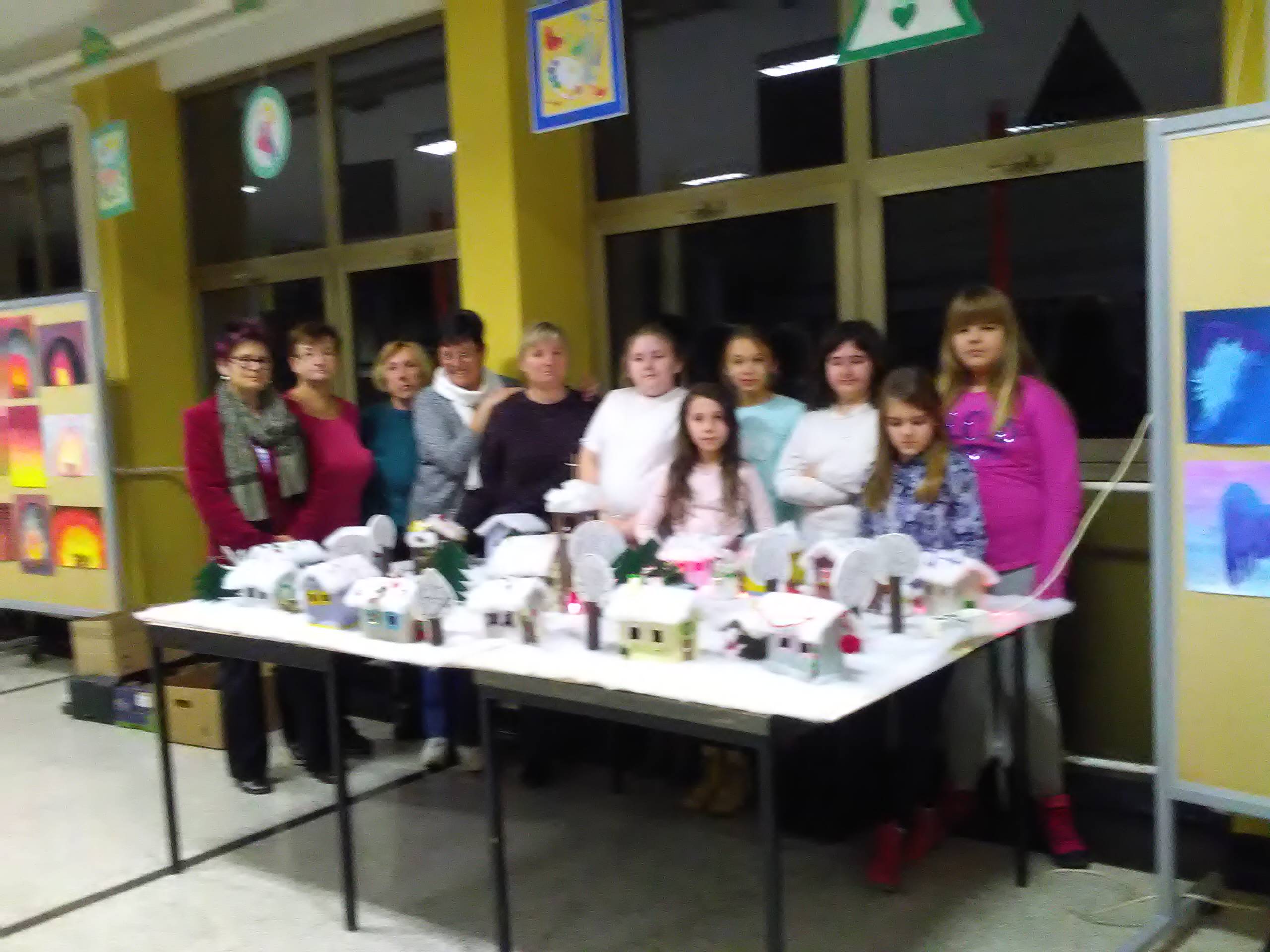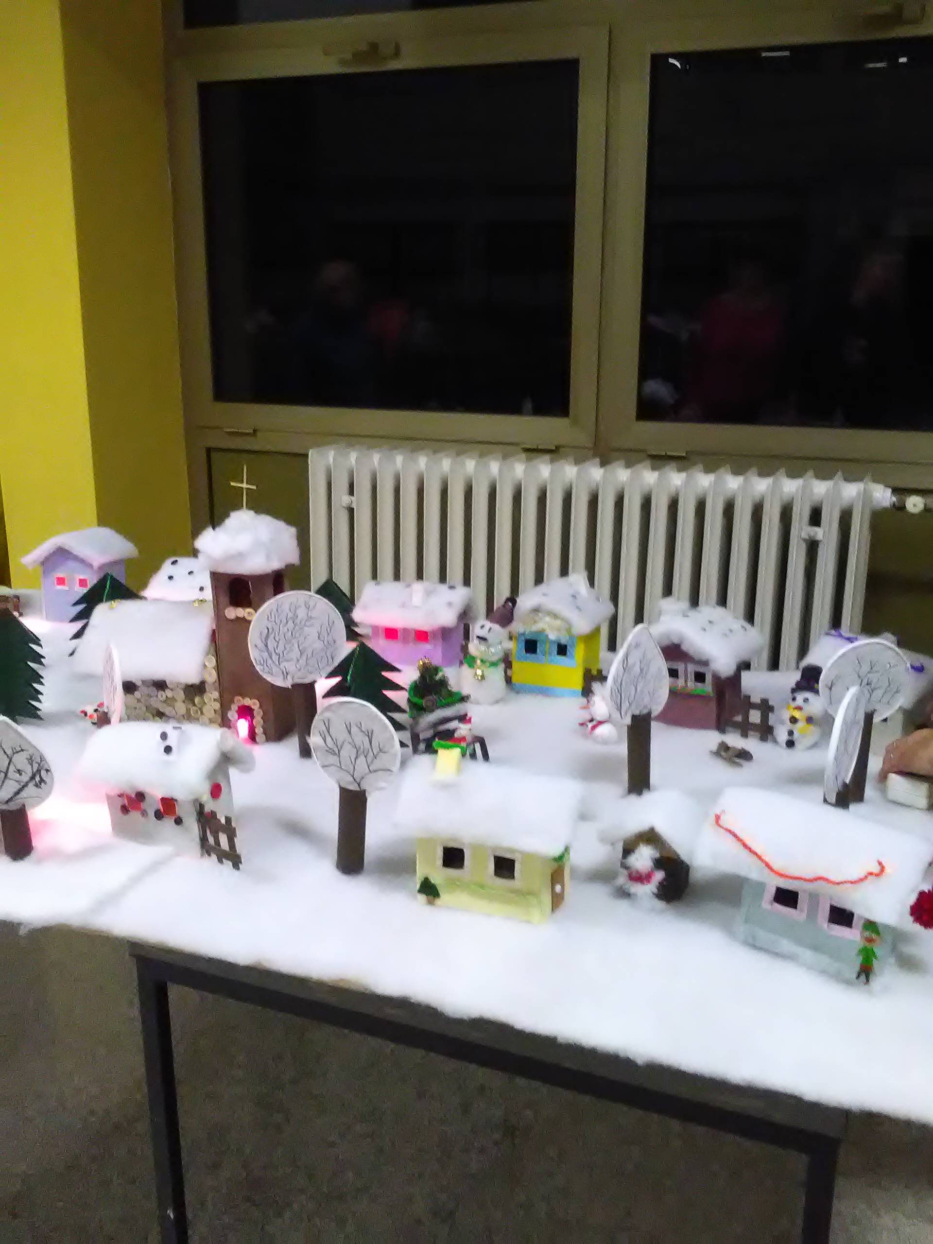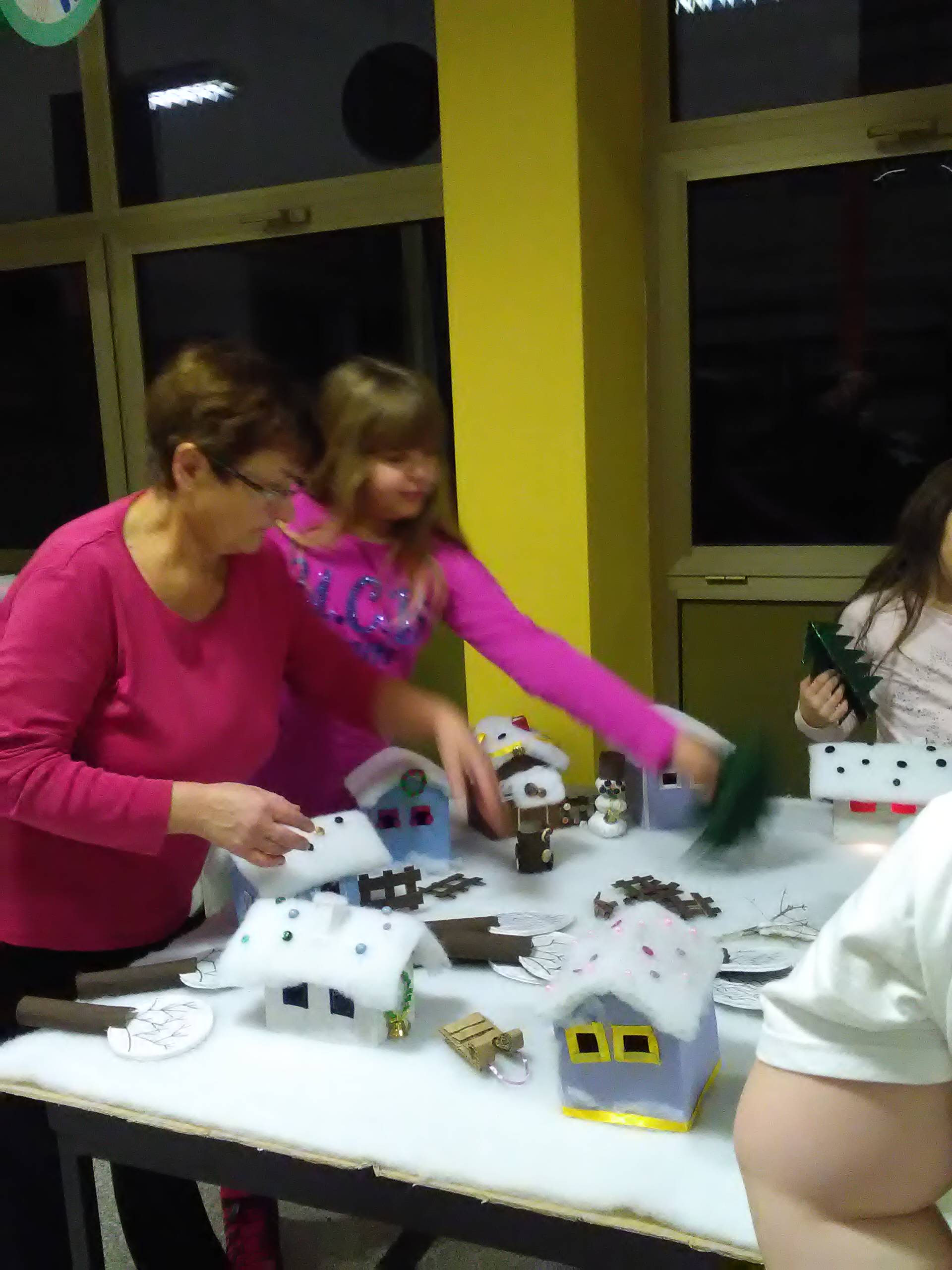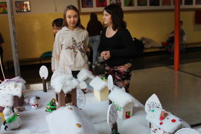 Riječ je o završnom radu učenica s voditeljicama članicama udruge Ženske ruke na recikliranju tekstila, a svi rekviziti koji čine selo pod snijegom su od komadića tkanine. Rad su djeca posebno željela prezentirati u prostoru svoje škole i taj dan su s velikim nestrpljenjem očekivala i izrazito se veselila.
