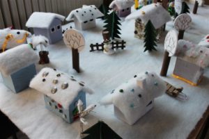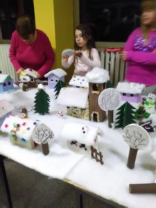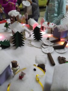 U nizu provedenih radionica na recikliranju tekstila izdvajamo radionicu s učenicima iz koje je izjedrena zanimljiva instalacija Selo pod snijegom – Božićna bajka.